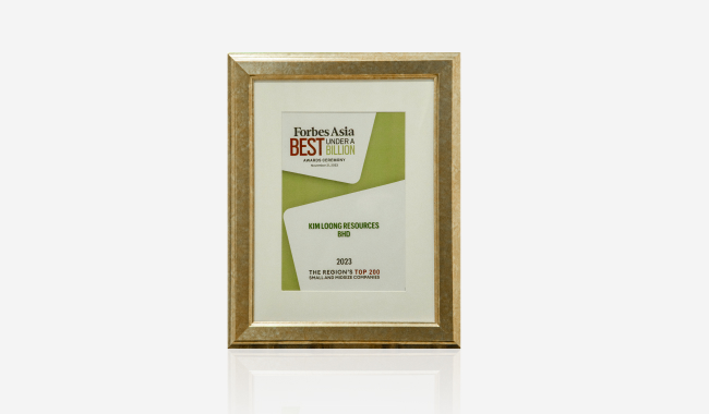 - Kim Loong Resources Berhad was awarded by The Edge in year 2018 as the highest returns to shareholders over three years in Malaysia (Plantation).